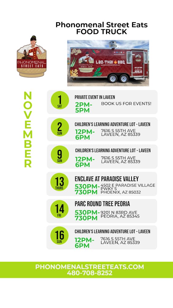 Step into the heart of flavor at our Lao-Thai Craft BBQ & Street food truck in Phoenix, AZ. Welcome, foodies!