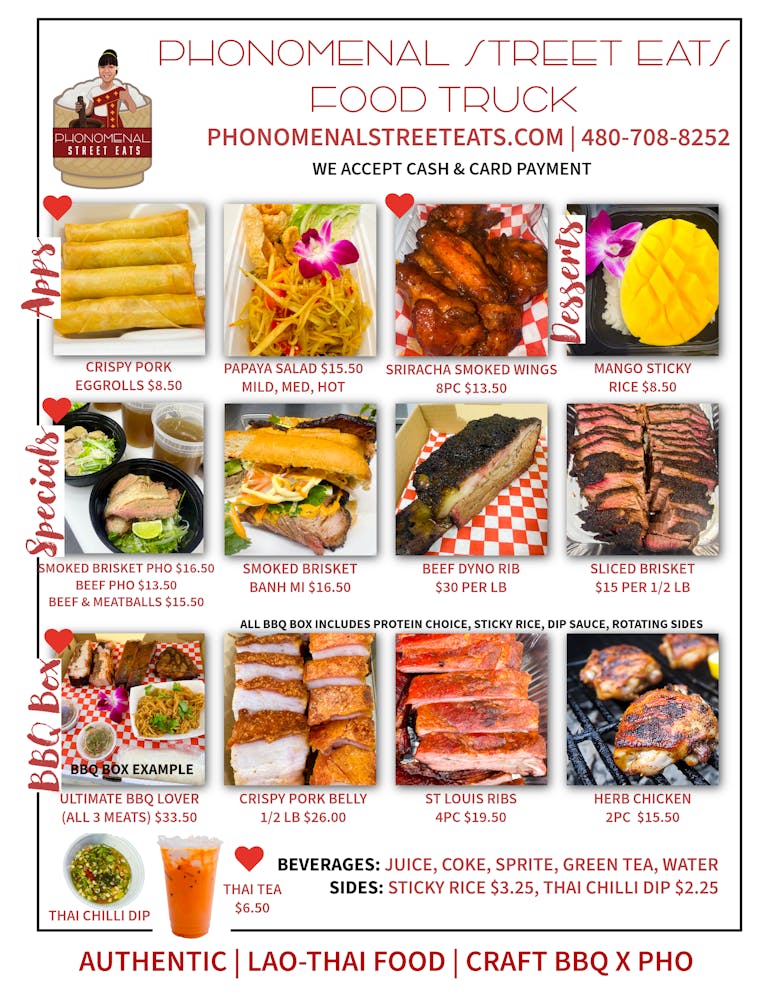 Step into the heart of flavor at our authentic Lao-Thai Craft BBQ & Street food truck in Phoenix, AZ. Welcome, foodies!
